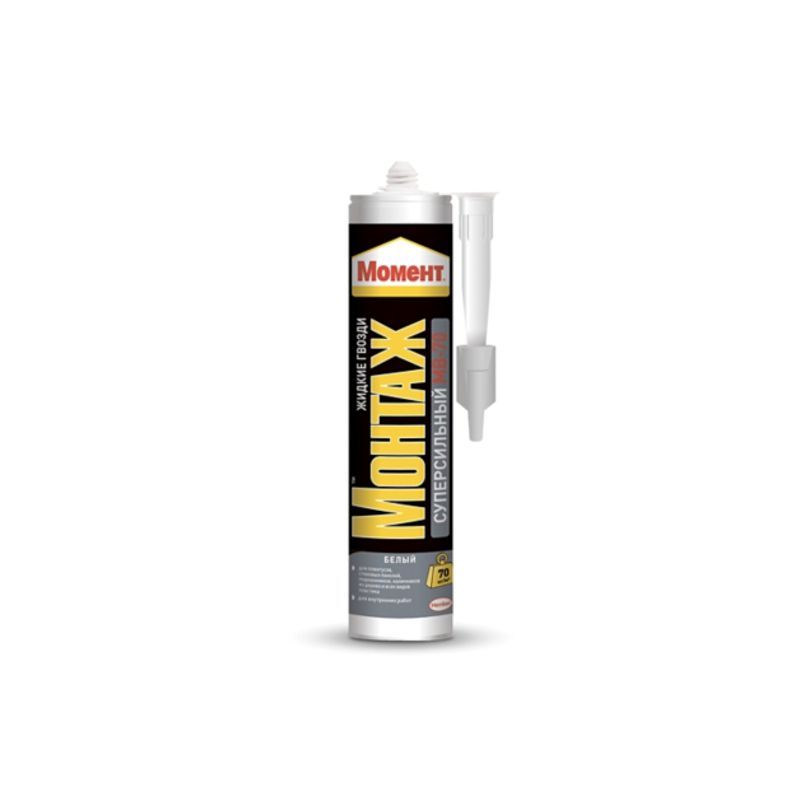 Момент Монтаж Суперсильный МВ-70 белый обладает высокой начальной силой склеивания (70 кг/м2) и отлично подходит для различных ремонтных работ.